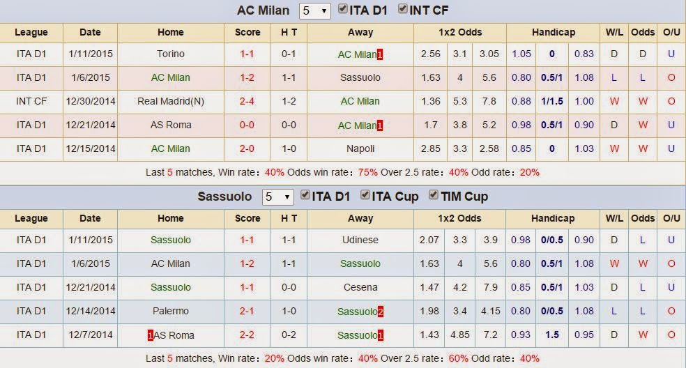 AC Milan vs US Sassuolo Calcio (03h00, ngày 14/01)