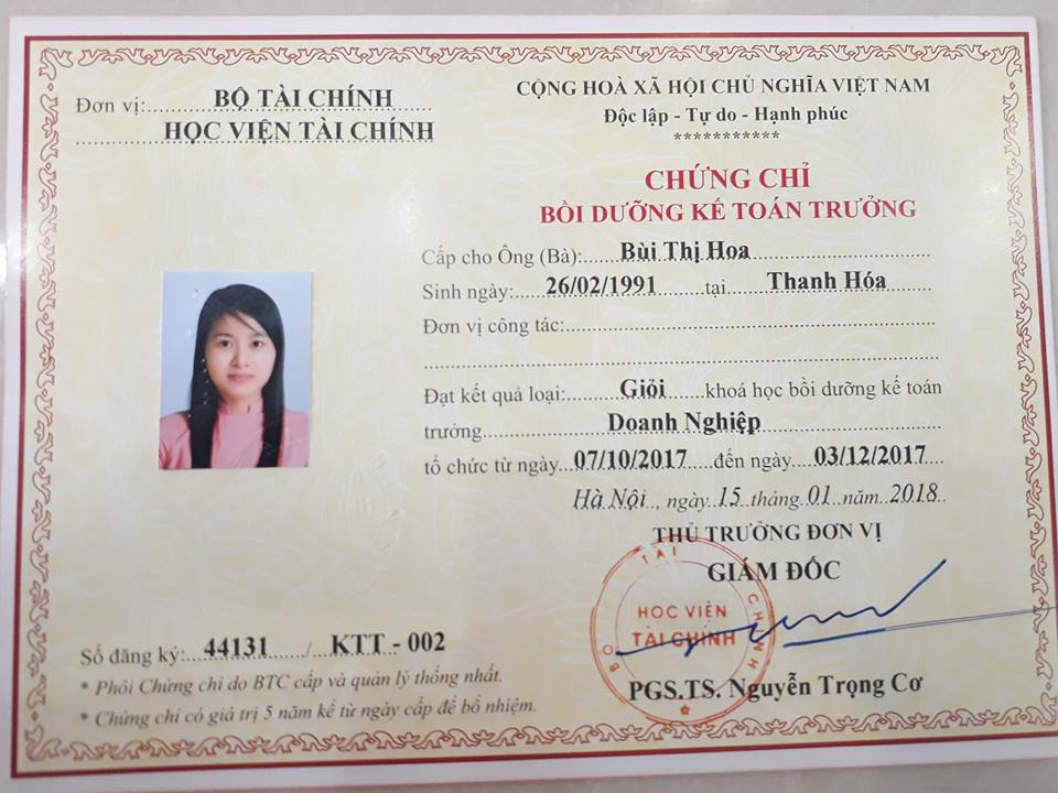 Cấp chứng chỉ kế toán trưởng tại Nha Trang, Đà Nẵng, Hồ Chí Minh