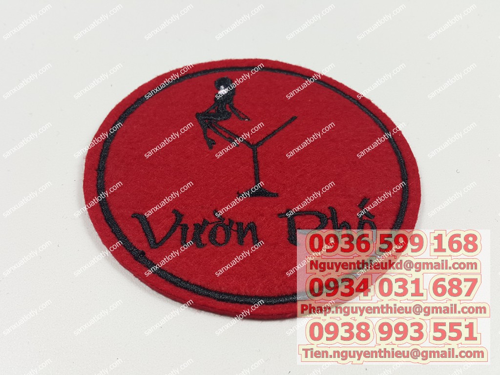 Cơ sở sản xuất đế lót ly thêu logo giá rẻ, thêu logo đế lót ly giá rẻ HCM, in đế lót ly quà tặng,