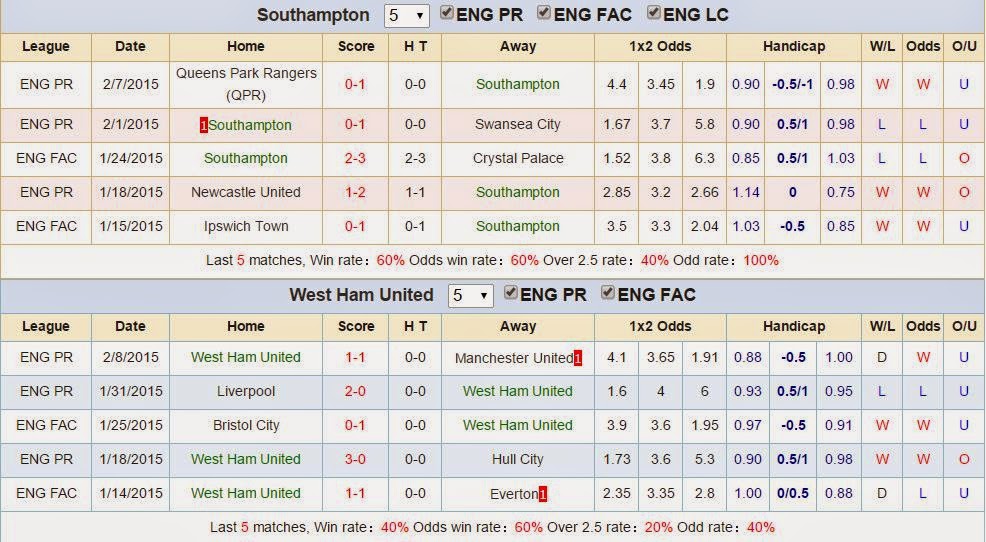 Dự đoán kèo Southampton vs West Ham 2h45 12-2