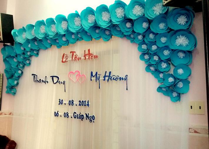 trang trí backdrop đám cưới hoa tươi hoa giấy rẻ mẫu đẹp