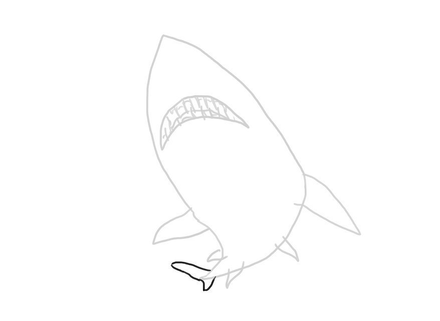 Dạy vẽ bút chì cá mập hổ cát Bước 1 Đầu tiên, vẽ một hình vòng cung có góc nhọn ở giữa để làm đầu cá mập. Bước 2 Vẽ một hình mặt trăng khuyết để làm miệng và vẽ thêm những hình giống cây kim mảnh bên trong miệng để làm răng. Bước 3 Phác thảo một đường cong có góc nhọn, nối hai điểm cuối hình vòng cung để phác thảo khung thân cá mập. Bước 4 Vẽ đường cong có góc để tạo thành vây. Bước 5 Vẽ một đường cong dài có góc nhọn và một đường cong nhỏ hơn ở phía dưới để làm vây đuôi. Bước 6 Vẽ lại toàn bộ cá mập dựa trên những đường phác thảo trước đó (thêm mắt, và những đường cong trên cơ thể của con cá mập hổ cát) Bước 7 Xóa các đường phác thảo không cần thiết. Bước 8 Tô màu cho bức tranh của bạn